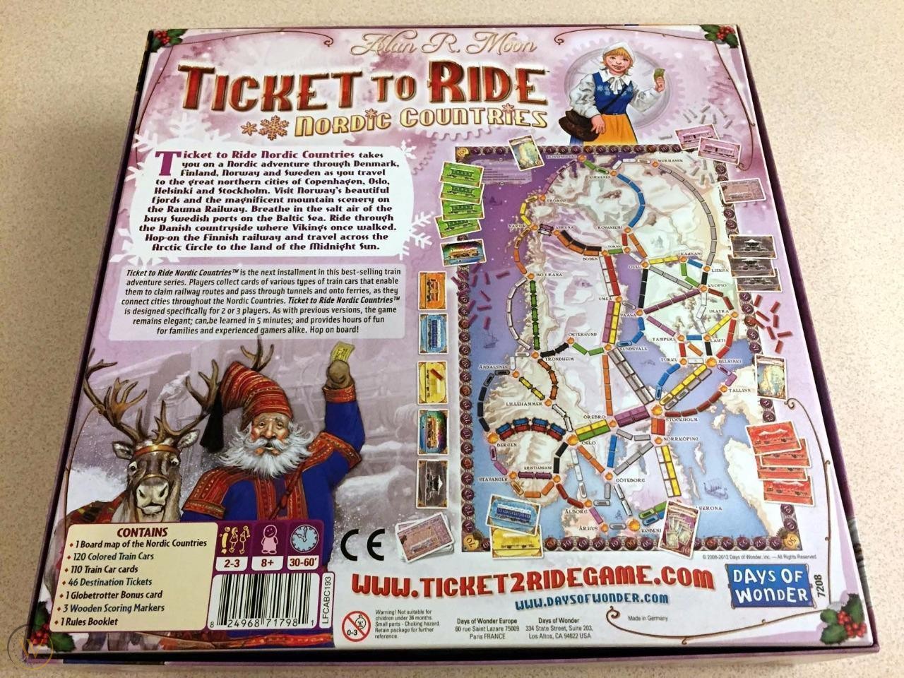 icket to Ride: Nordic Countries takes you on a Nordic adventure through Denmark, Finland, Norway, and Sweden as you travel to the great northern cities of Copenhagen, Oslo, Helsinki, and Stockholm. This version was initially available only in the Nordic Countries of Denmark, Norway, Sweden, and Finland; a worldwide limited-edition release occurred in August 2008 and it has since been kept in print again by Days of Wonder.