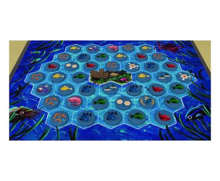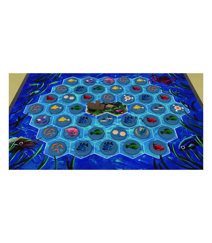 The small island of Kuchinoshima has been hit by a terrible storm, leaving the village with only a single fishing boat. Each hoping to prove themselves the village’s best fisherman, 2-4 players take turns moving the boat marker around the island, collecting any fish tiles they land upon. At the end of the day, the player with the best haul wins, but there’s a twist – with 3 or 4 players, each player’s score is added to the player to their right’s score before determining the winner!