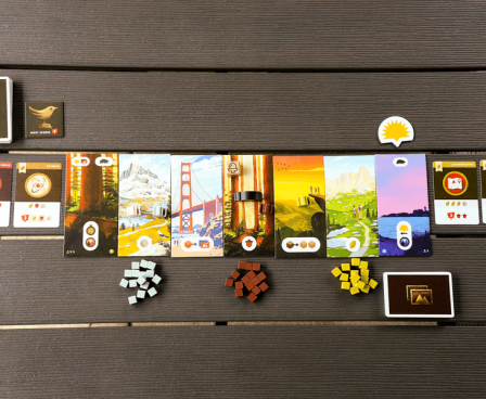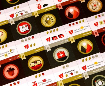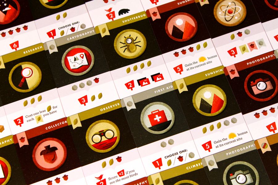 As players visit the trail end, the sun sets over the trail. As night falls, trail sites grant more powerful actions, but they won't last forever. When the sun leaves the trail, the last round of play takes place, then the player with the most points from collected badges, photos taken, and bird sightings wins.