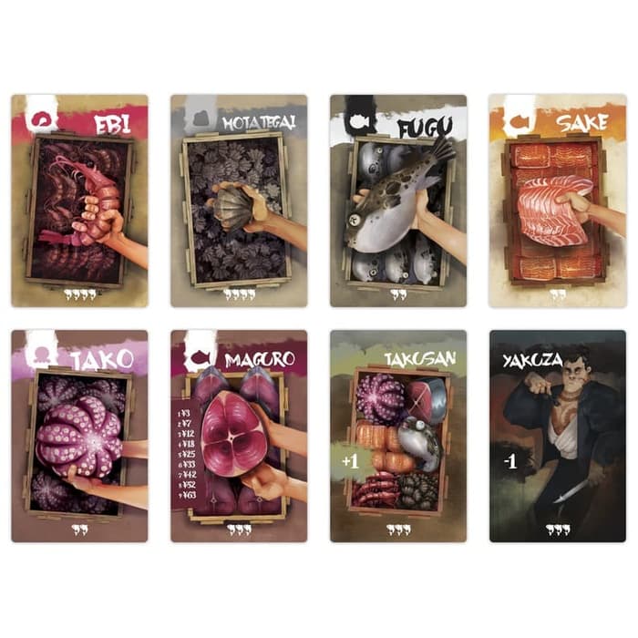 Tokyo, 1930. The morning wakes up lazy, but you have a lot of work to do. In Tsukiji, each player is a restaurant owner who faces other traders at tough auctions for the best batches of fish and seafood. Understand the logic of prices, manipulate quotes, set traps, sabotage your opponents, and seek the greatest possible profit in this tense fight for the best fish in all of Japan!