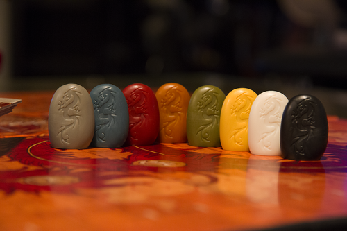 - 8 dragon pieces in Black, White, Gray, Green, Blue, Red, Yellow and Orange
