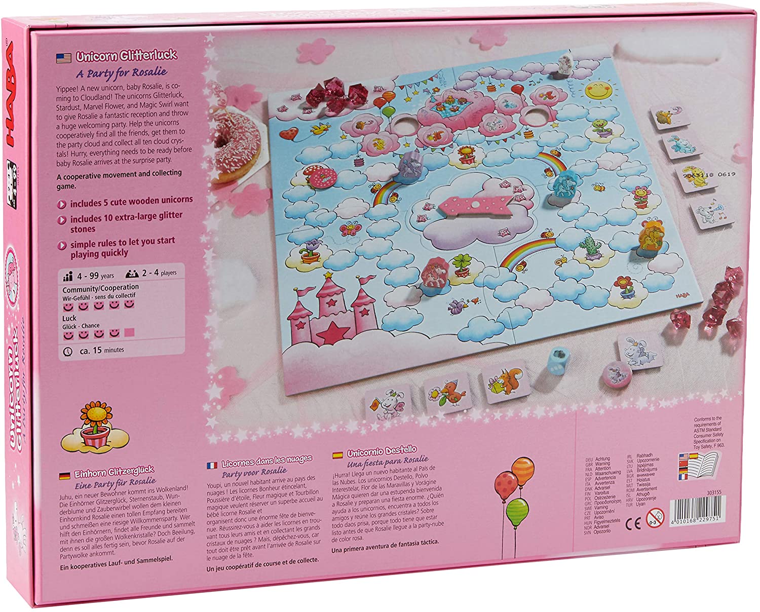 The unicorns Glitterluck, Stardust, Marvel Flower, and Magic Swirl want to give Rosalie a fantastic reception and throw a huge welcoming party. They invite all their friends and collect incredibly large cloud crystals. But they must hurry since everything at the party is supposed to be ready before Rosalie arrives.