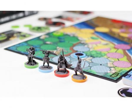 The game includes a double-sided board with two different battlefields, pre-washed miniatures for each hero, and custom life trackers that's brought to life with the stunning artwork of Oliver Barrett and the combined design teams of Restoration Games and Mondo Games.