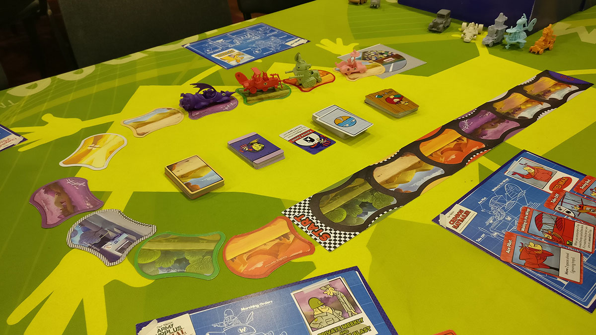 Races are simple, yet strategic, as players place cards indicating the terrain tiles to which their racer will move, with the last card played indicating where Dastardly and Muttley will end up. However, it wouldn't be wacky without a little trouble standing in the way. Racers need to dodge or negate traps set by Dastardly as he attempts to stay ahead of the pack. Racers can choose between single races lasting 10-15 minutes or the Championship mode, which offers unique rulesets changing from race-to-race before a winner is named.
