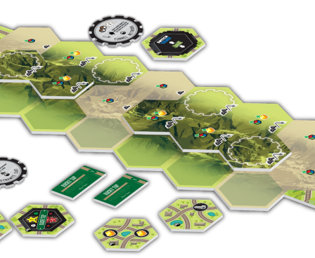 In addition to the mountain range expansion board, this expansion contains 5 new End tiles, 4 new Special tiles, 2 additional train route tiles, 2 new variable common resources tiles, 2 new town tiles, 4 new six-point gold nugget tokens, 4 new whistle stop tiles, 2 new gold nugget tiles, 9 new upgrades, and 6 new shares.