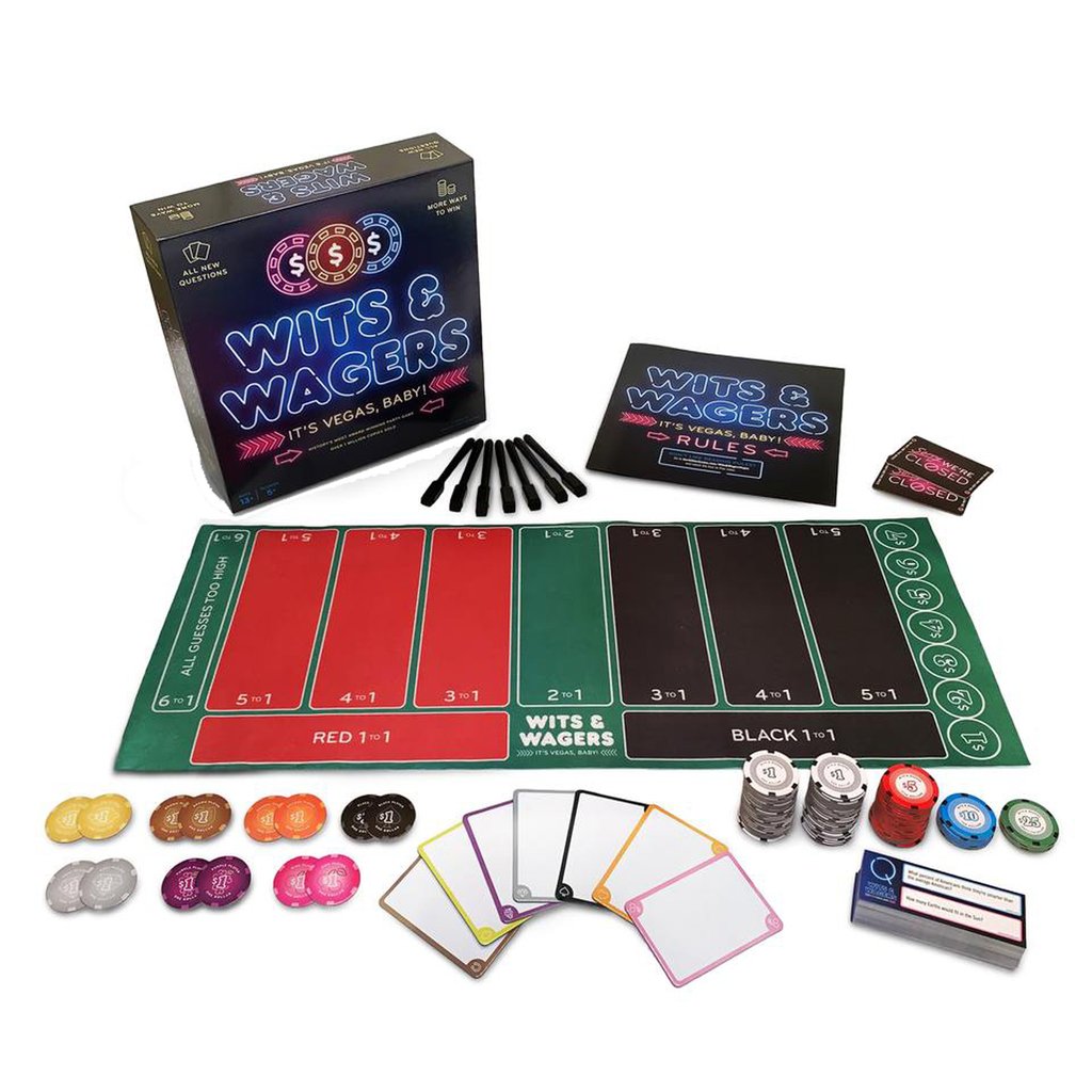 Wits & Wagers is about making wild guesses, and then betting on which of your friends made the guess that will be closest to the right answer. The riskier the bet, the higher the payout.