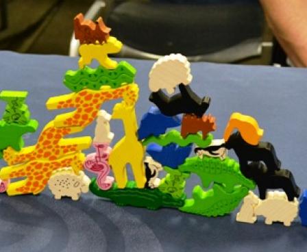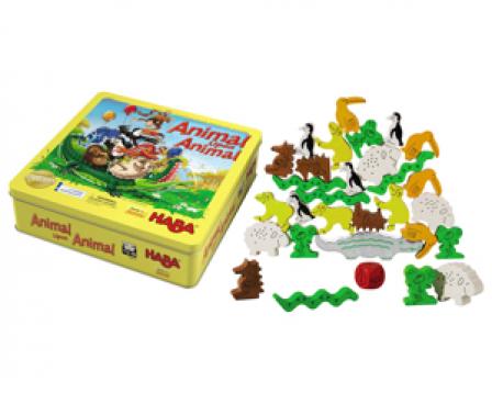 Tier auf Tier (a.k.a. Animal Upon Animal, Pyramide d'animaux, and Dier op dier) is a simple stacking game, listed for ages 4-99, with 29 cute wooden animals.