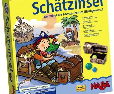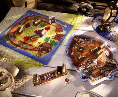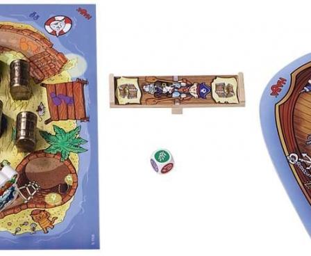 In front of the island of Pirate Fishbeard lies the ship of some other pirates. They want to steal the gold from Fishbeard. But the slope of the pirates is so unstable that it can fall over. Each player has to remember how heavy the gold boxes are so that they don't make the slope fall over whenever the pirates transport the gold to their ships!