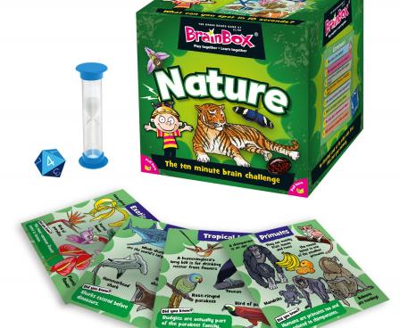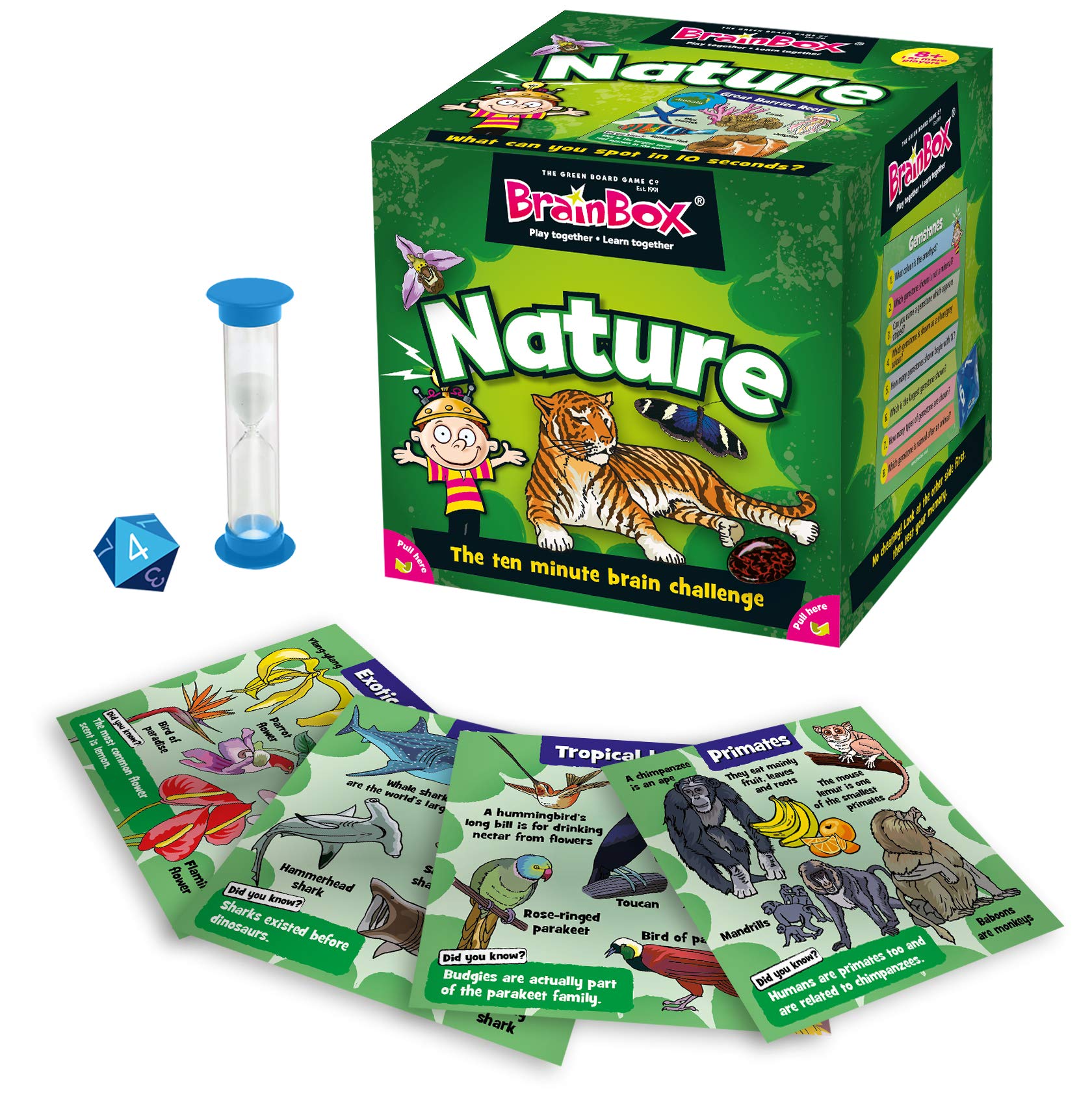The object of the game is to win as many cards as possible in ten minutes. The first player takes a card from the BrainBox and turns the timer over. The player then has ten seconds to study the picture on the card. When the timer runs out the card is passed to player two and player one rolls the die to see which question is to be asked. The questions are on the reverse of the picture card. Player two checks the answer by looking at the picture and if it is correct the card is given back to player one to keep. If the answer is wrong the card is placed back into the BrainBox and the next player chooses a card. Please remember, the answer to the question is on the picture side of the card, so look carefully! The player with the most cards after ten minutes wins! If there is a tie, it's sudden death with both players choosing a card and having to answer all eight questions on the card. The player who answers the most correctly wins! For 1 or more players, ages 8+. Contains 54 illustrated cards, 1 rules card, 1 timer and 1 eight sided die. Have fun!