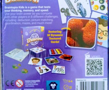 Braintopia Kids is a follow-up to the fast-paced brain bender that tests your mental focus, flexibility, and speed, but geared toward younger players. Comprised of eight different types of challenges, up to six players race through a deck of cards, fighting to keep up with the ever- changing mini-games, and attempt to solve the puzzles faster than their opponents. Collect brain tokens by beating a single Touch challenge or claiming a pair of cards from any of the other seven games: Maze, Odd one out, Coordination, Duplicates, Frequency, and Reasoning. The first player to collect four brain tokens wins!