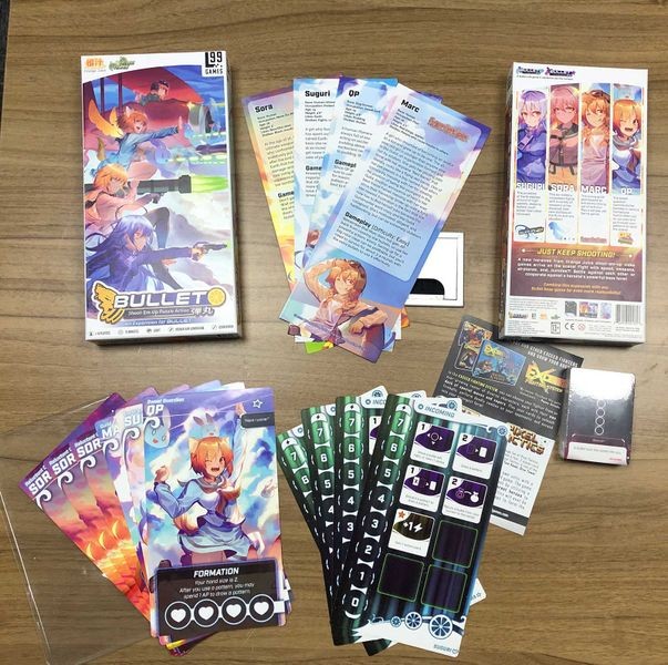 Bullet♥️: Orange is a new expansion for Bullet♥️. Bullet♥️: Orange brings 4 new heroines to the game, and represents the first tabletop appearance of famous characters from the Orange Juice franchise, with characters from top-rated Orange Juice titles Sora, Flying Red Barrel, SUGURI, and QP Shooting - Dangerous!! all making appearances in the new game.