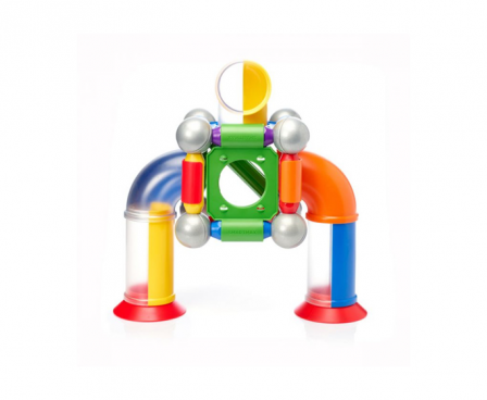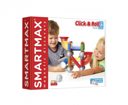 An entry into the SmartMax Ball Run line, Click & Roll includes 30 pieces that enable kids to make all kinds of crazy structures and let the balls roll. Click & Roll contains special parts including straight and curved tubes, panels with holes and funnels. Includes 2 long bars, 8 medium bars, 3 curved tubes, 2 straight tubes, 2 funnels, 9 metal balls, 4 panels with holes and a building guide. SmartMax enables young children to explore magnetism safely, with strong, oversized pieces that are specifically designed for handling by young kids. SmartMax products are safe and durable, made from the highest quality materials.