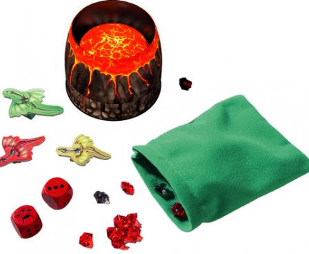 In Feuerdrachen, the players become dragon riders and set off for Rubino! They have to move their figures with tactical skill and a bit of luck with the dice around the volcano to try to collect the precious dragon rubies. In the end whoever has collected the most rubies in their little bag wins.