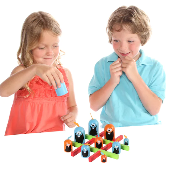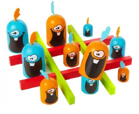 Test your memory and appetite for laughs with this easy to learn and quick game of strategy. Cartoonish wooden characters bring pizzazz to this Tic-Tac-Toe style game. Just line up three of your gobblers in a row to win. But watch out! These gobblers are hungry for fun...and other gobblers. Awash in cheerful colors, this wooden board game is made to be treasured. Gobblet Gobblers is the best first strategy game for kids to challenge their parents.