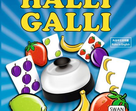 Halli Galli is a speed action game in which players watch for sets of exactly five fruit. The deck contains 56 playing cards showing four kinds of fruit in groups of 1 to 5 and a bell of the type found at hotel reception desks.