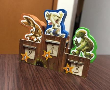 At the start of a race, each player secretly bets on up to two of five animals: turtle, rabbit, lamb, wolf and fox. One animal is chosen at random for each player, then after receiving a hand of seven cards, each player places one of his cards face-down (possibly the same animal) as an additional bet. Players then take turns laying down 1-4 cards, with all cards needing to show the same animal, then refilling the hand to five cards. As soon as eight total cards have been played or four cards of any one animal, the animals move (maybe).