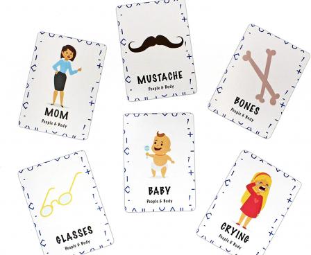 3▹ Act out the card! – First team to finish their cards wins! [ Includes: 3 Fun & Educational Categories (Animals, People & Body, Fun & Games) 60 Unique Picture Cards 1 Hourglass Timer 1 Scorecard Booklet ▸ 4+ Players / 2 player option included! ]