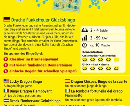 Together with Dragon Sparky and his friends, players embark on an adventure to discover fiery volcanoes, mysterious treasure maps, and more! They’ll keep track of what they find by placing thunderstones on their bingo cards as they go. The first player to get four thunderstones in a row will call “Dragon Bingo” and win the game.