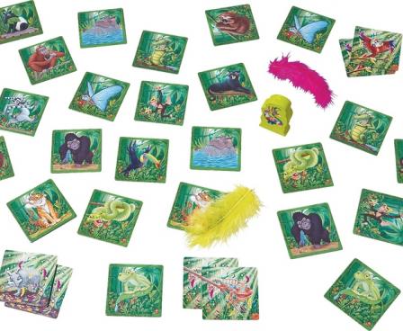 Magic Feathers plays like a memory game, except that all of the tiles that you're trying to collect are face up! What's the challenge to making matches when you can see everything before you? You must take two feathers from a magical bird and blow those feathers one at a time onto matching tiles in order to claim them. Whoever collects the most tiles wins!