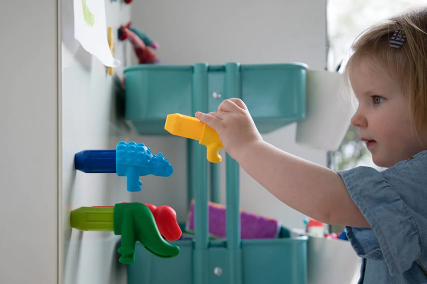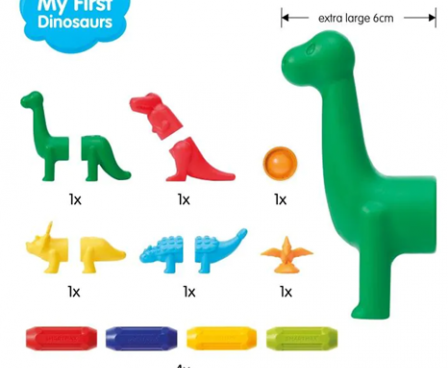 SmartMax My First Dinosaurs is designed for kids ages 1 up to 5 years. Let the imagination roam free, and mix and match for crazy combinations. The soft animals simply click on the bars, making them ideal for little hands.