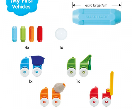 This set of magnetic pieces will allow you to assemble four different types of vehicles simultaneously: the fire truck, the cement mixer, the dump truck and the tow truck. Create the new vehicles of your choice, assembling the pieces together as you wish.