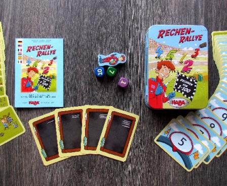 Player, whose turn it is, takes this die and rolls it, longing for nice result. According to number of pips rolled, competitor moves forward and stops on the field with some example of multiplication. The player’s task is now to solve the example correctly. For a flawless calculation, he receives as a reward top card from the number pack and puts it in front of himself as a trophy. The game continues until the competitor reaches the finish line. At that point, the player with the highest number of cards will win.