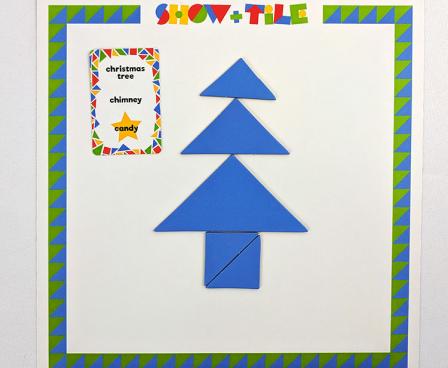 Show & Tile is a party game for 3-6 players that's suitable for all ages! Each player takes two sets of tangram tiles, picks a word, and starts building. At the end of 90 seconds, put your tiles down and try to guess everyone's words!