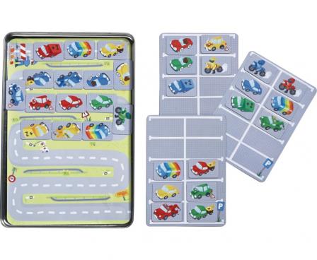 When vacation season begins, the roads are full of travelers! Trucks, cars, campers, motorcycles and convertibles. With bumper to bumper traffic players try to get their own cars in line as quickly as possible. Who is lucky enough to get all their cars on the highway first? Whether in the car, the train or airplane, HABA travel games are loads of fun! Lasting entertainment shortens travel time, every time! Bye-bye boredom!