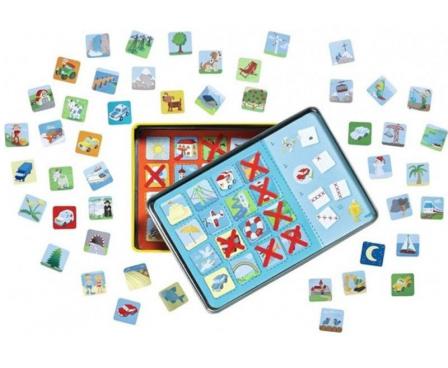Road trips offer many opportunities to discover! A mountain peak, a tunnel, a castle, a rainbow and much, much more. The first player to discover enough images making a straight, or diagonal row of images on his bingo card, is the best observer on the road.Whether in the car, the train or airplane, HABA travel games are loads of fun! Lasting entertainment shortens travel time, every time! Bye-bye boredom!