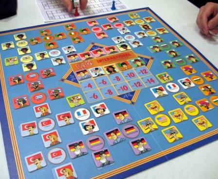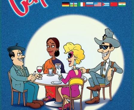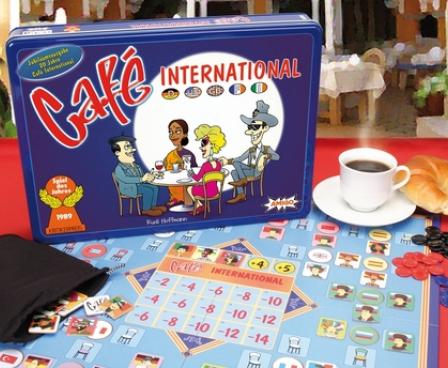This game revolves around the placement of multi-national customers in a restaurant. The board shows many different tables, each with four chairs around them. The tables are grouped by nation, so the Chinese like to sit with other Chinese. However, some of the chairs are on the border between two nations, so a person from either place could occupy the seat. To further complicate this odd tile game, each of the people is either male or female, and tables must be gender-balanced. As the game progresses some tiles become unplayable...