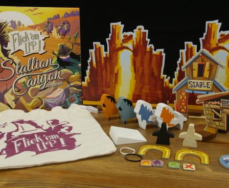 Whats a cowboy without his horse, you ask? Well, ask no more for Flick 'em Up! Stallion Canyon, the first expansion for Flick 'em Up!, introduces dashing horses! Two cowgirls also join the gang amongst many new elements that will have you conquering brand new towns and scenarios for more flickin' fun!