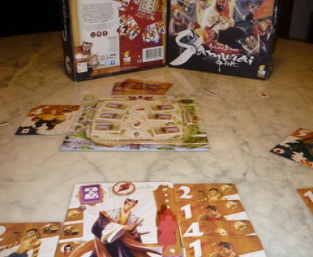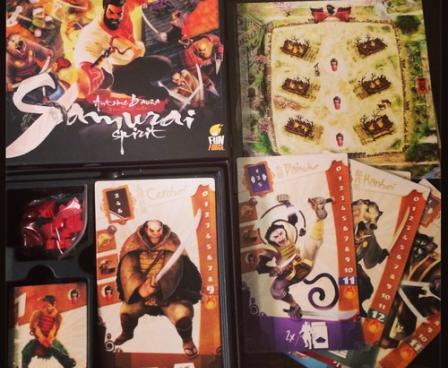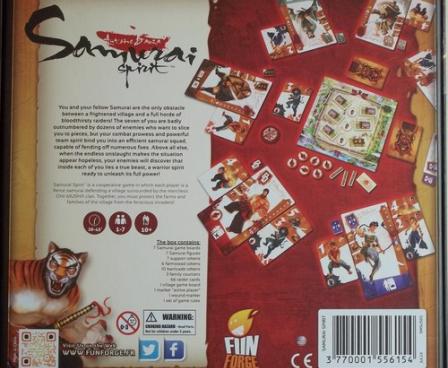 Samurai Spirit is a co-operative game in which each player is a fierce samurai defending a village surrounded by a horde of bandits. The game plays out over three turns during which each player takes turns drawing bandit cards, then choosing whether they want to fight the bandit, defend the village, or let the bandit pass in order to help the other samurai.