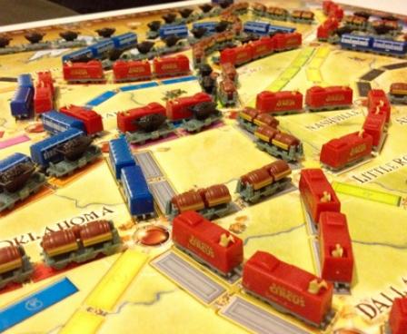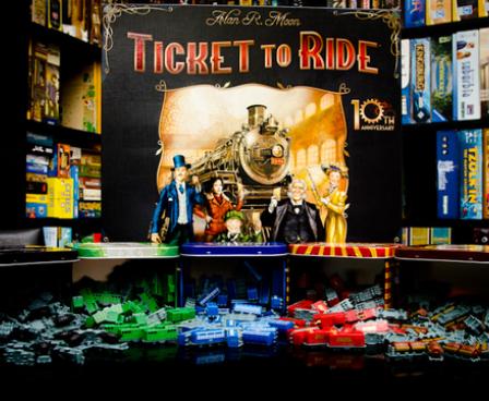 In Ticket to Ride, players collect cards of various types of train cars they then use to claim railway routes in North America. The longer the routes, the more points they earn. Additional points come to those who fulfill Destination Tickets goal cards that connect distant cities; and to the player who builds the longest continuous route.