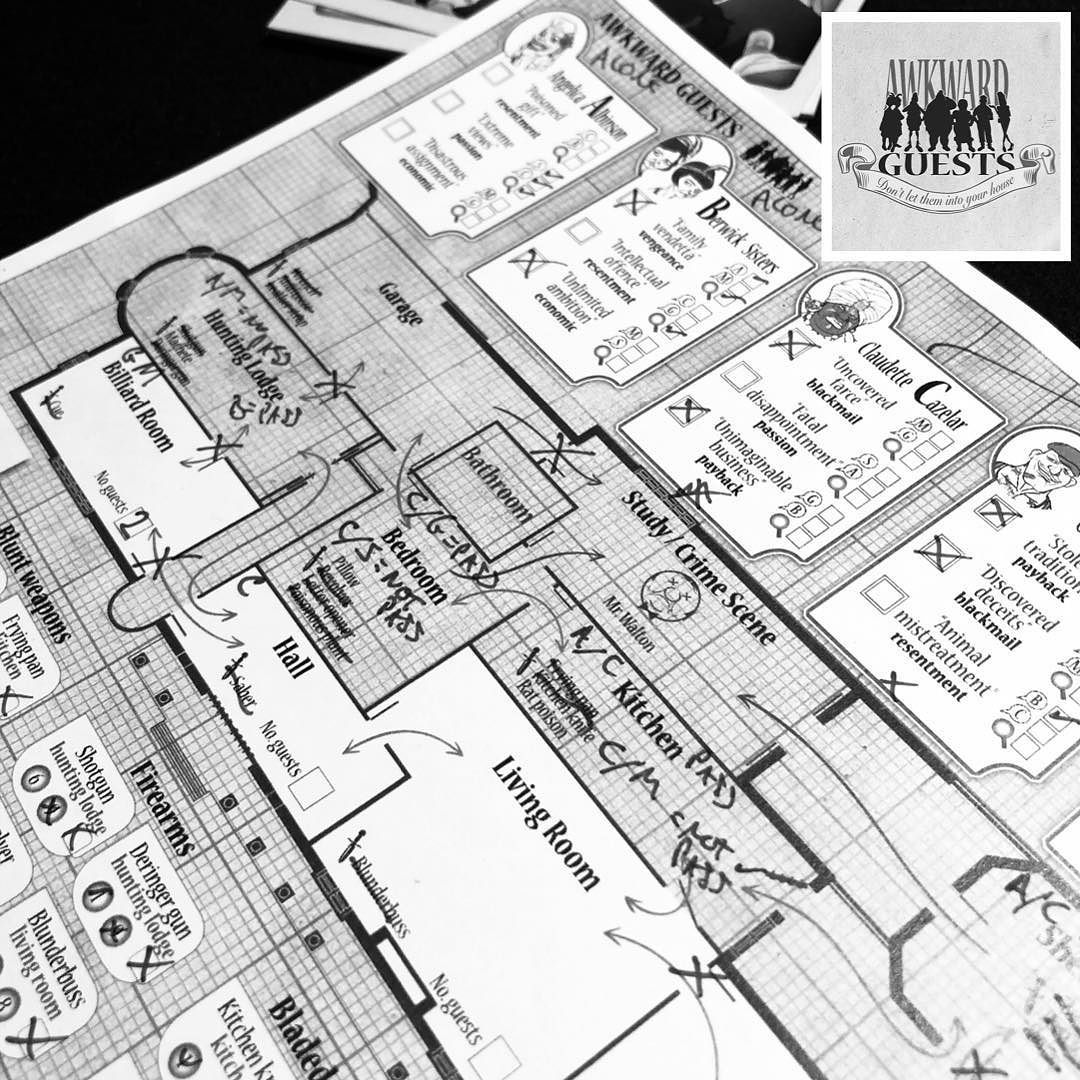 Awkward Guests / Incómodos Invitados is a one of a kind deduction game with infinite re-playability. Based on the innovative Brilliant Deck System!