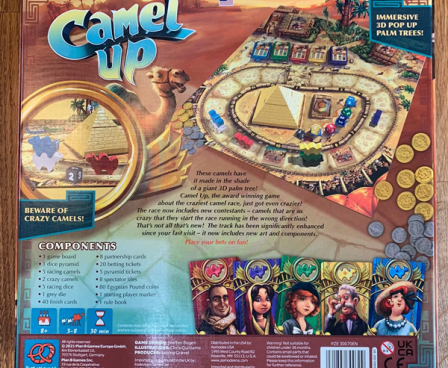 This 2018 edition of Camel Up features new artwork, a new game board design, a new pyramid design, engraved dice, and new game modes, including crazy rogue camels that start the race running in the opposite direction! You never know how a race will end!