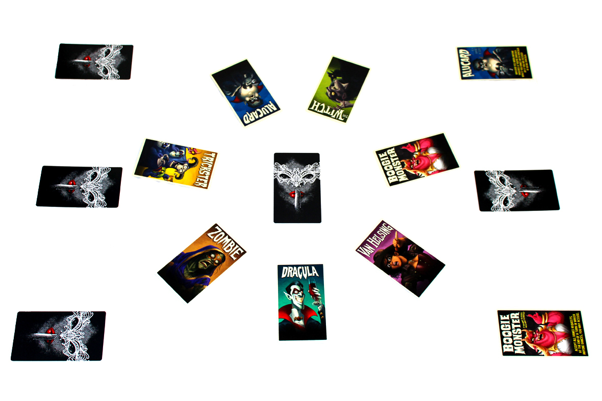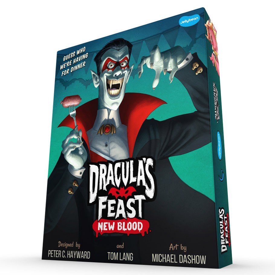 Dracula’s Feast: New Blood is a 4-8 player logical deduction game by Peter C. Hayward and Tom Lang, with art by Michael Dashow. Dracula invited the townsfolk over for dinner (and maybe a few for dessert), but – what a pain in the neck – a mash of monsters have crashed the party looking for a bite. Now, everything is at stake…