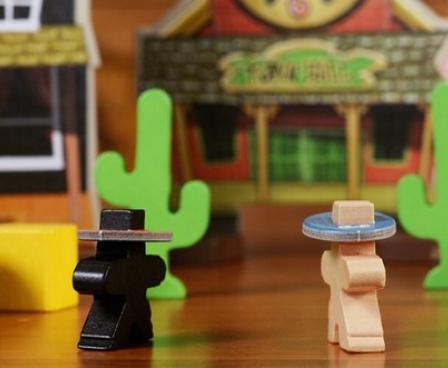 The cities in the West are not the safest place to be. In the disc-flicking game Flick 'em Up!, you can become an outlaw and rob banks, free prisoners, attack innocent bystanders... or you could become the Sheriff and try to protect the people of your city from these bandits!