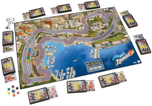 Formula D is a high stakes Formula One type racing game where the players race simulated cars with the hope of crossing the finish line first. This is a re-release of Formula D with several changes from the original format. Whilst old tracks can be used with the updated Formula D rules, the new game features boards that have an F1 track and a Street Track on the other side. These street tracks each have a novel inclusion or two to add greater theme -