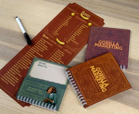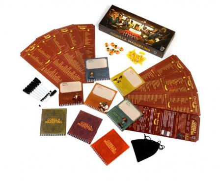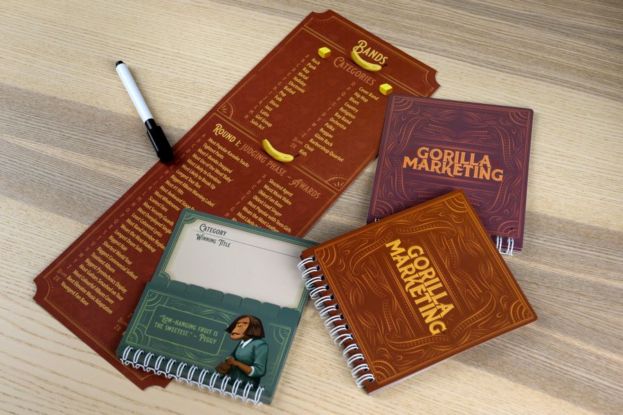 Gorilla Marketing is a party game of naming ridiculous products, movies, companies, bands, college courses, or food trucks! It is played over two rounds: In round 1, you name the thing, and in round 2, you write the advertising tag line for it.