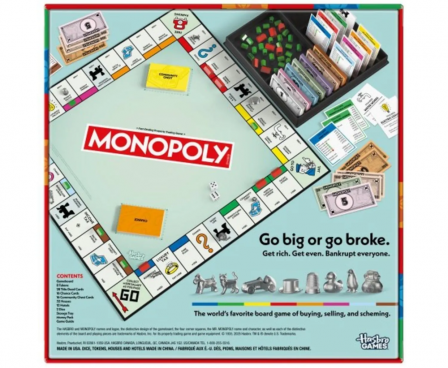 Go big or go broke in the Monopoly board game! In this edition of the fun family game, experience the classic gameplay fans know and love, plus improved features. We’ve included a sleek storage tray to keep cash, cards, and components organized. We’ve also increased the size of the tokens, houses, and hotels from those in previous editions for easier handling. Players move around the board buying as many properties as they can. The more they own, the more rent they’ll be able to collect from others. The last one with money, when all other players have gone bankrupt, wins! Looking for fun games for game night? This family board game for kids and adults is an exciting choice. Monopoly games and family games for kids and adults are great kids gifts, too.