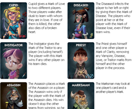 In One Night Ultimate Vampire, the sun has just set, and vampires have descended on your sleepy little town, slowly turning the villagers into even more vampires. Fortunately, the village has several residents with special powers, with most willing to help eliminate this fanged menace!