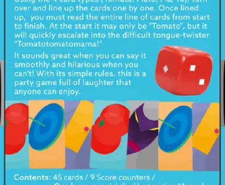 With its simple rules, TomaTomato is a party game full of laughter that anyone can enjoy.