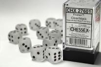 Chessex Frosted Clear/Black Set 16mm D6 12 Dice (CHX 27601)