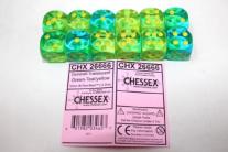 Chessex Gemini Translucent 16mm d6 12 Dice Green-Teal/Yellow 26666