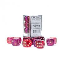 Chessex Gemini Translucent 16mm d6 12 Dice Block Red-Violet/Gold 26667