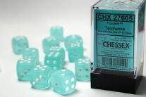 Chessex Frosted Teal/White Set 16mm D6 12 Dice (CHX 27605)