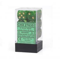 Chessex Vortex Green Gold 16MM D6 12 Dice ( ChX 27635 )