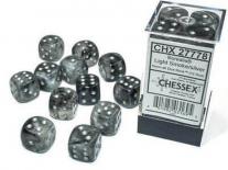 Chessex Borealis Luminary Light Smoke/Silver 16mm D6 12 Dice CHX 27778