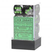 Chessex Gemini Black Grey Green 16MM D6 12 Dice ( CHX 26645 )