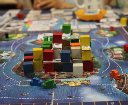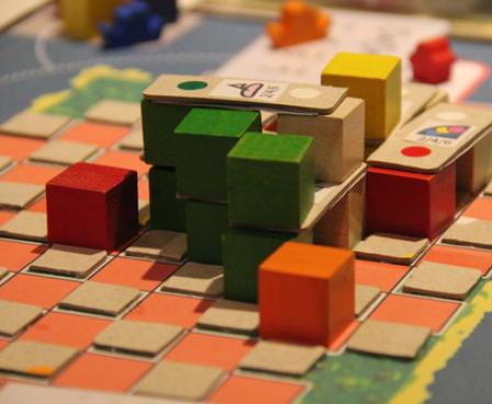 Burano is played over four seasons, 14 rounds altogether. Through the novel "cube pyramid-driven" mechanism, players take turns paying coins to operate their cube pyramid during each round. The operation of the color-coded cubes would trigger certain actions, such as fishing, lace making, and house roofing, which will earn players victory points (VP). At the end of the game, whoever has earned the most VP wins.